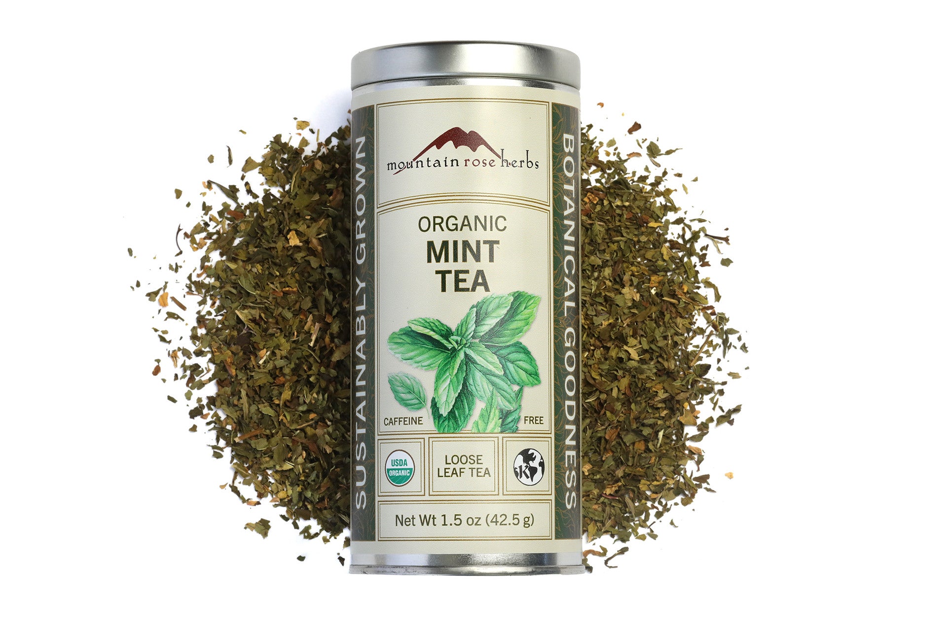 Loose-leaf tea: Organic peppermint leaf, organic spearmint leaf, and organic peppermint flavoring.