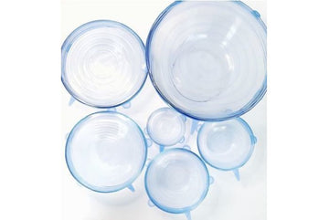 The set includes 6 blue round silicone covers in various sizes. Thanks to their stretchable material, the food lids will easily fit most bowls, pots, containers, mugs, cups, cans, jars, and you can even use them to cover your half-cut melons, fruit, or vegetables. Make sure bowl is clean and dry around the rim to hold seal.