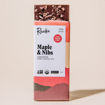Low stock: 8 leftThis maple-sweetened bar tastes like a brownie straight out of the oven. Rich and smooth on the inside, generously sprinkled with toasted nibs for a crispy, crunchy outside. A longtime factory favorite. Perfect for those looking for alternative sugars.