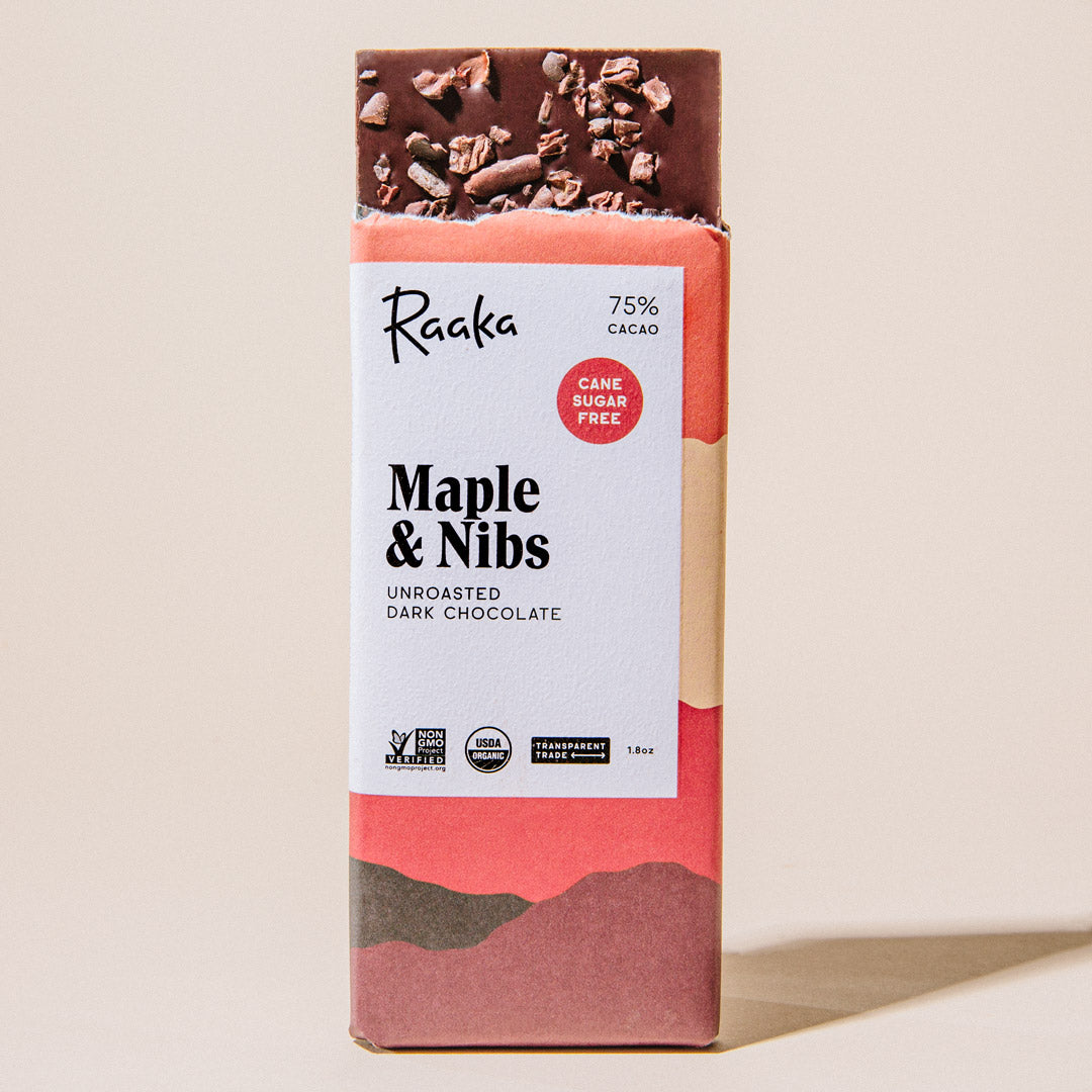 Low stock: 10 leftThis maple-sweetened bar tastes like a brownie straight out of the oven. Rich and smooth on the inside, generously sprinkled with toasted nibs for a crispy, crunchy outside. A longtime factory favorite. Perfect for those looking for alternative sugars.