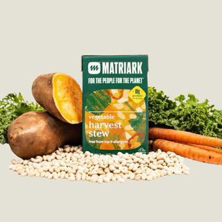 A nutritious, delicious complete meal in a carton, made with sweet potatoes, carrots, navy beans, kale, and rice.